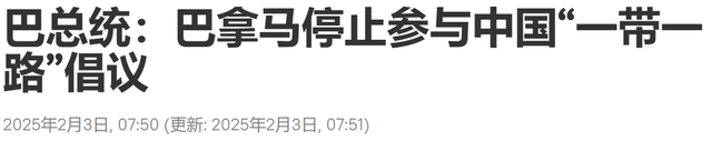 美国国务院宣称,鲁比奥国务卿当着巴总统穆利诺的面表示,白宫“不希望看到中国在该地区影响力持续增加”,若巴拿马不退出“一带一路”倡议,美国将不再维持巴拿马运河的现状,换言之,美国或将收回巴拿马运河的控制权。正是在美国赤裸裸地威胁下,尽管穆利诺总统和巴拿马人民对美国的威胁非常不满,最终还是迫于超级大国的压力,不得不宣布退出中国的“一带一路”倡议。